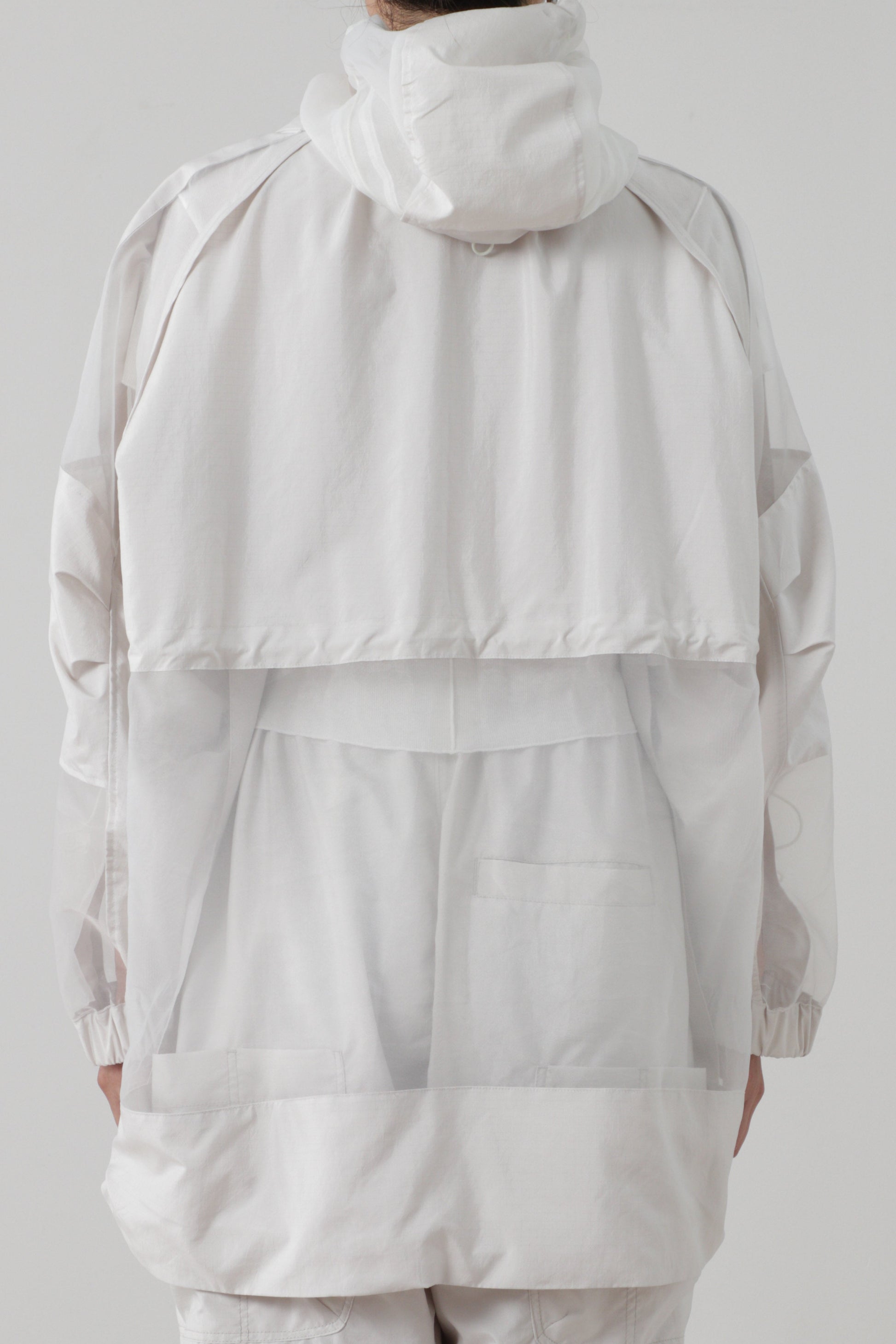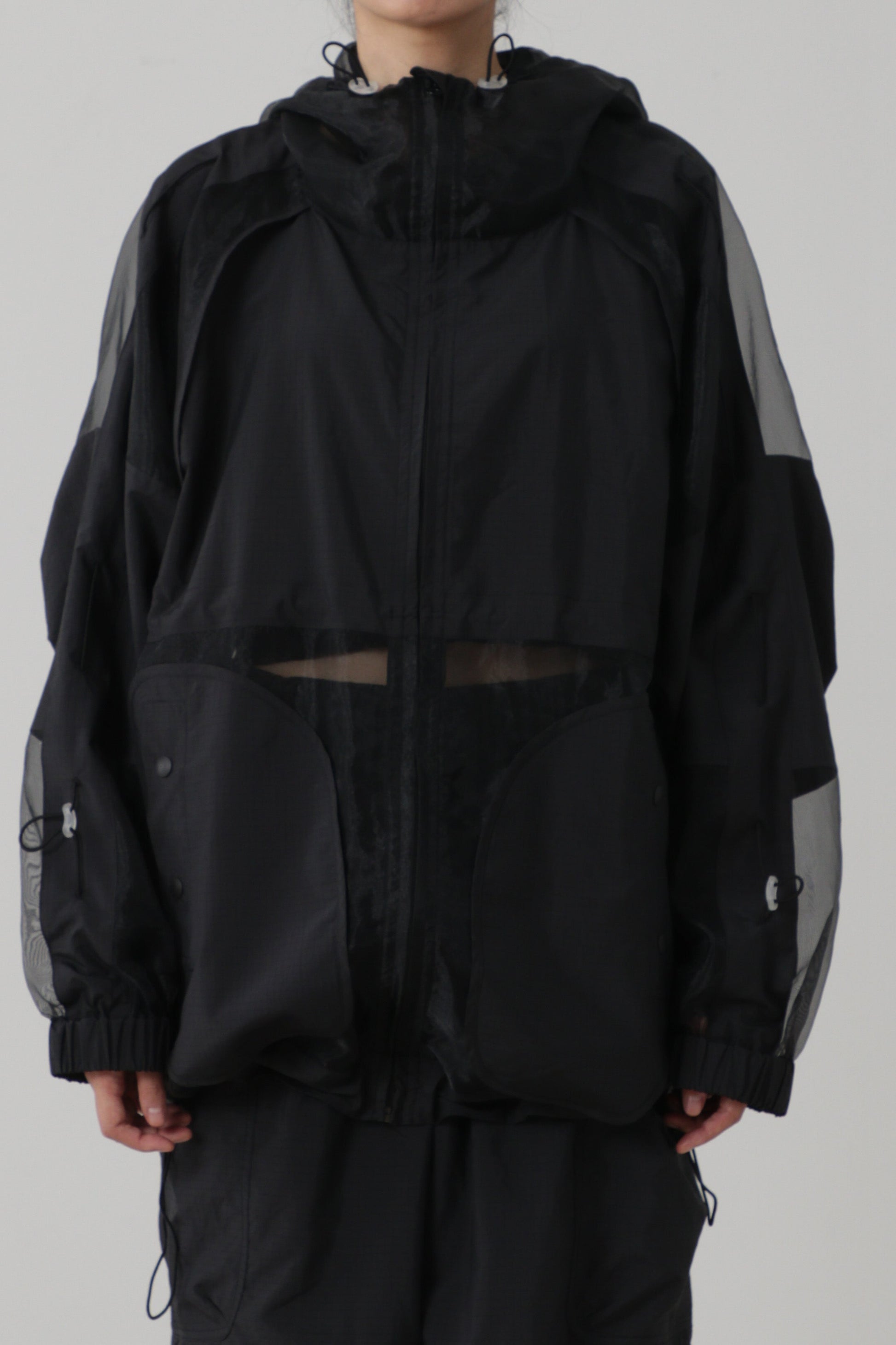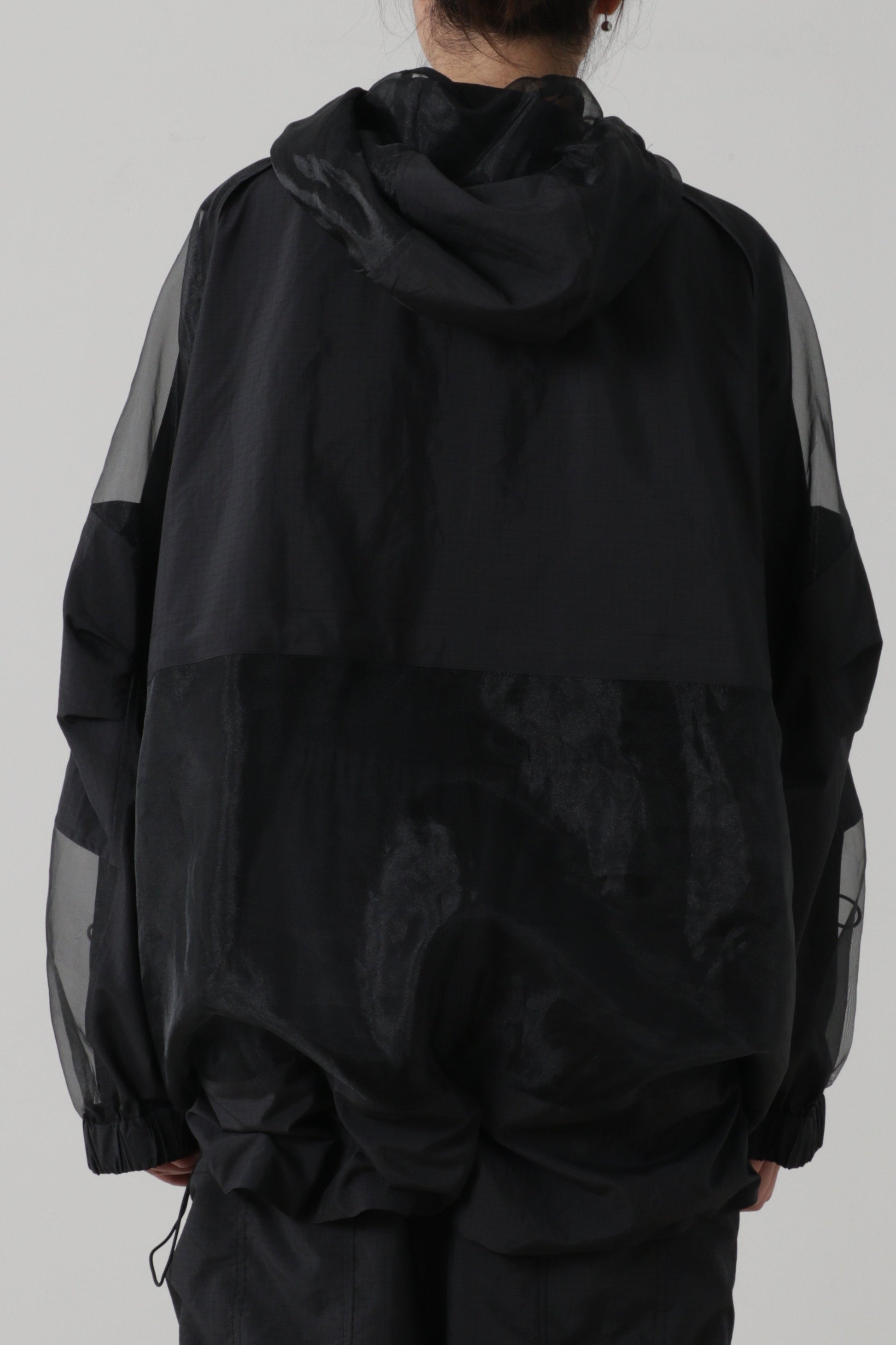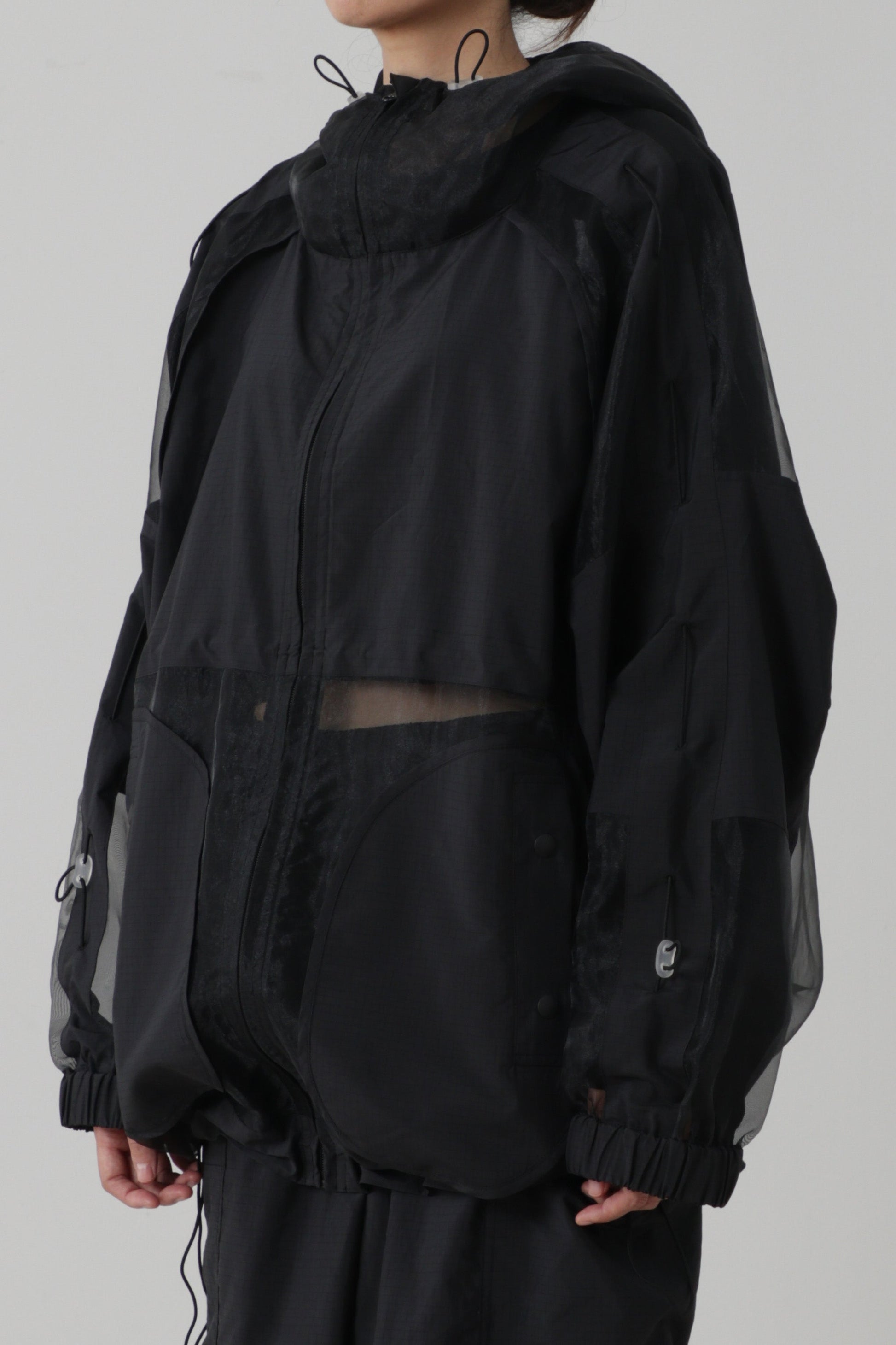 撥水可能の施されたリサイクルポリエステル100%のリップ素材とオーガンジーブルゾンです。