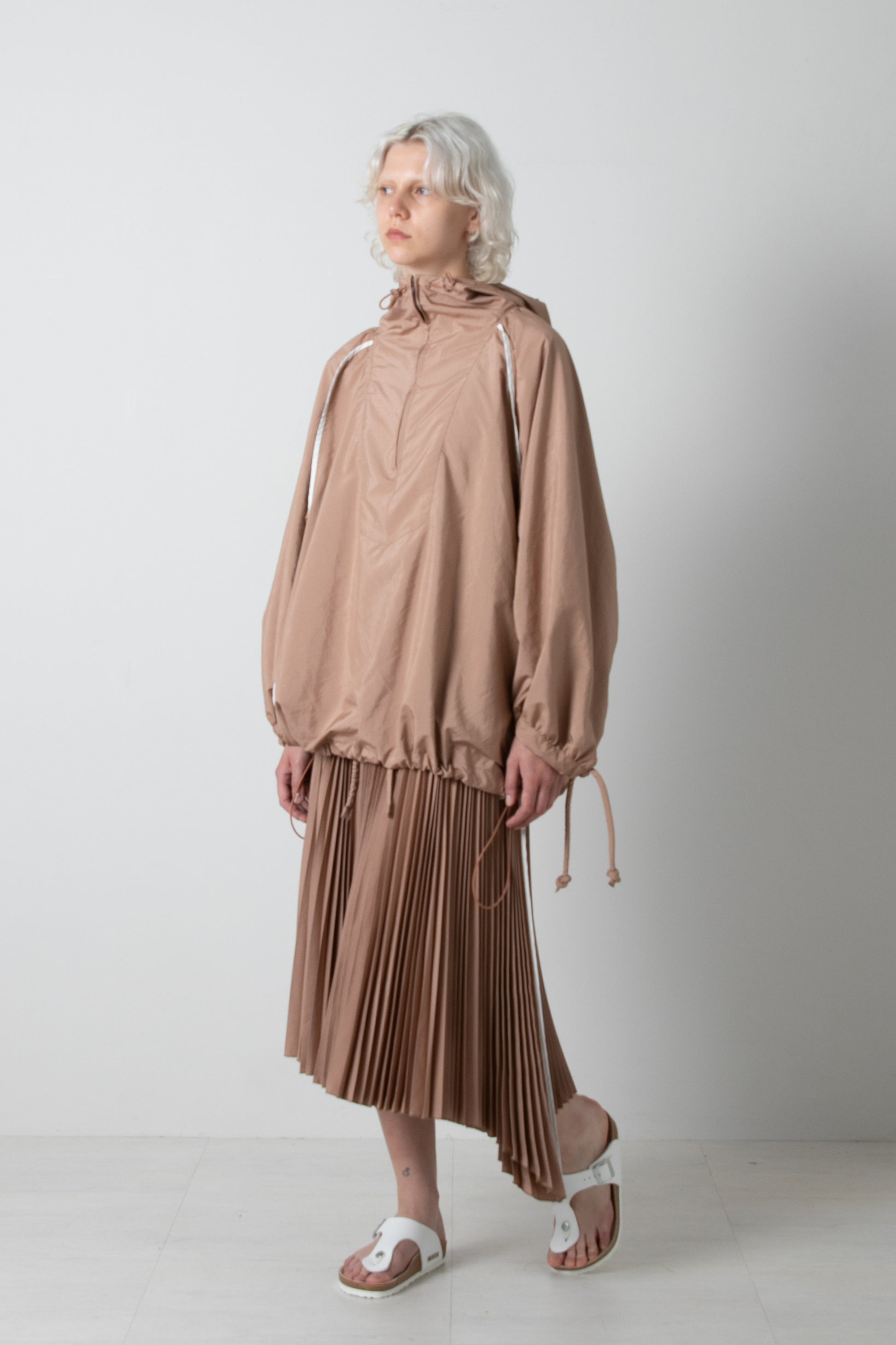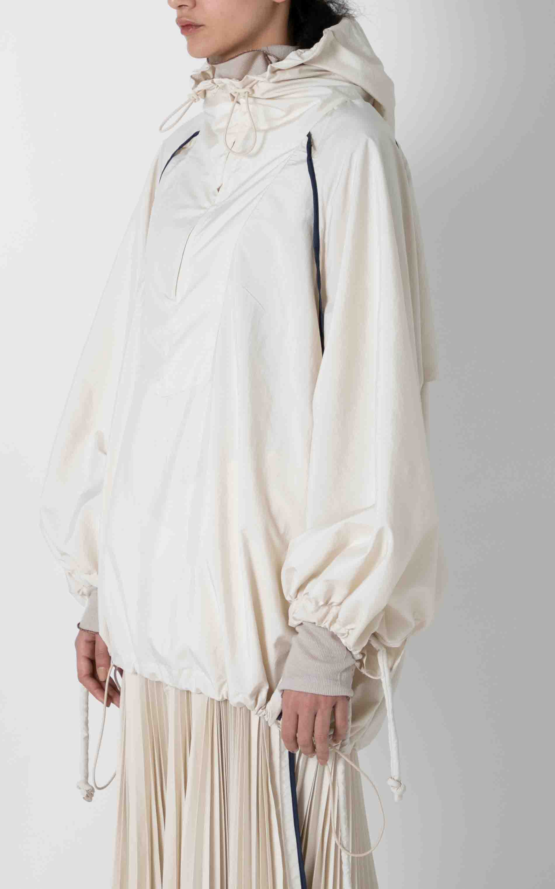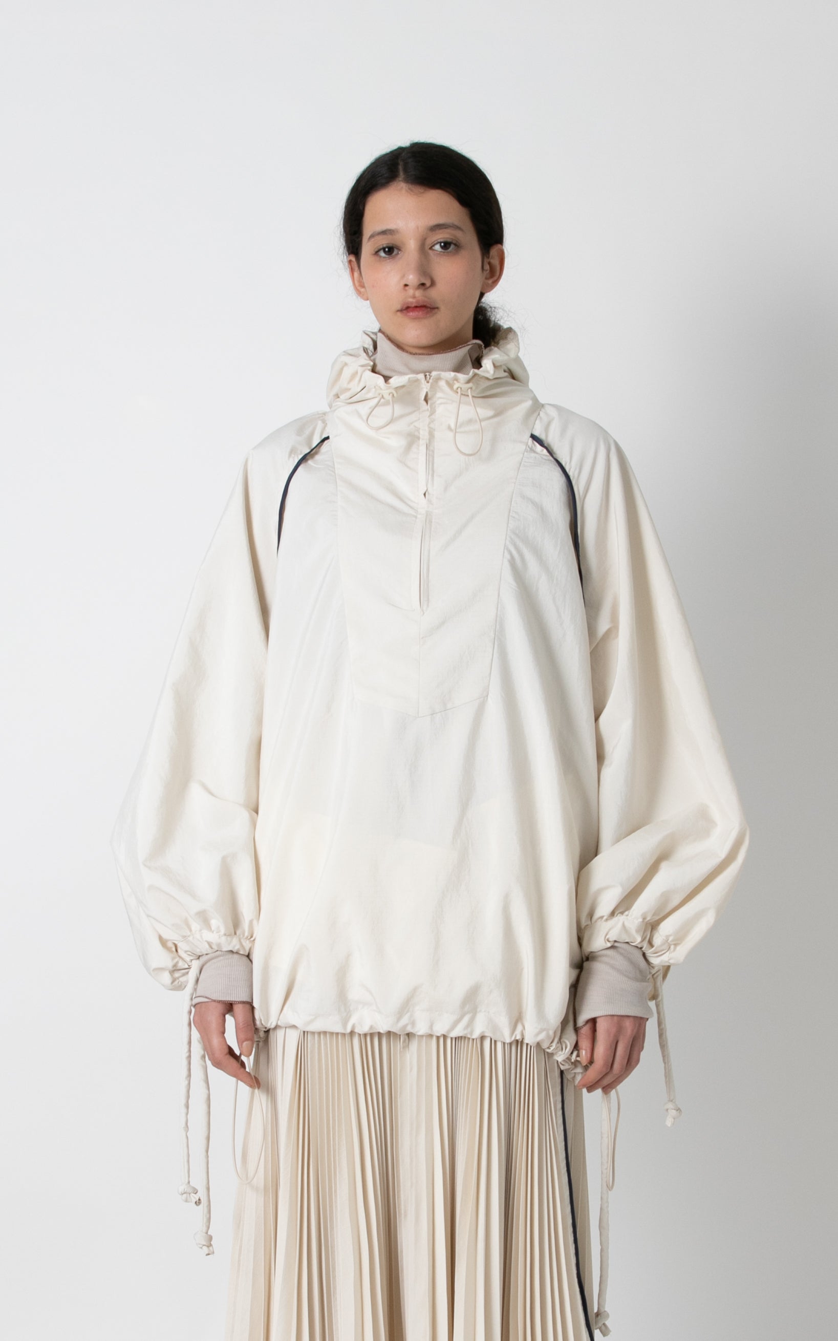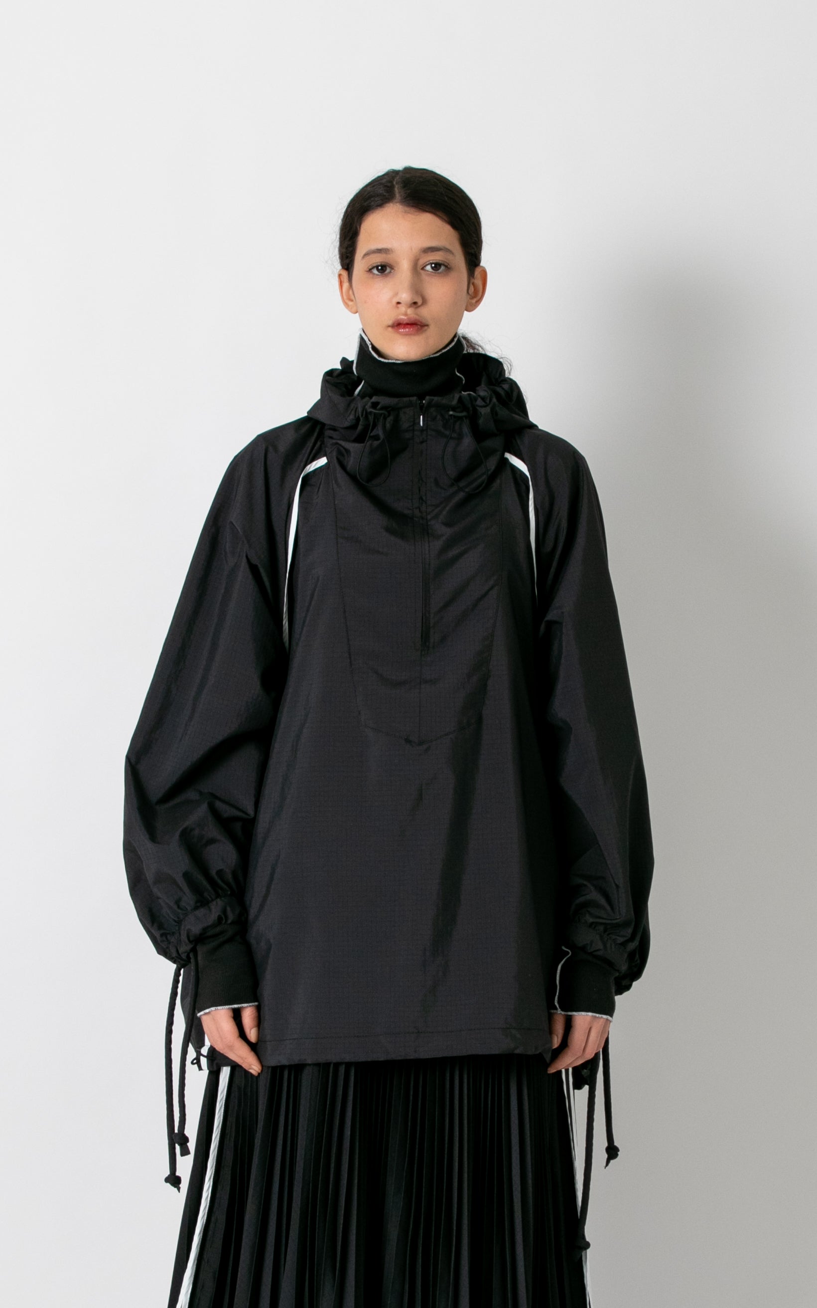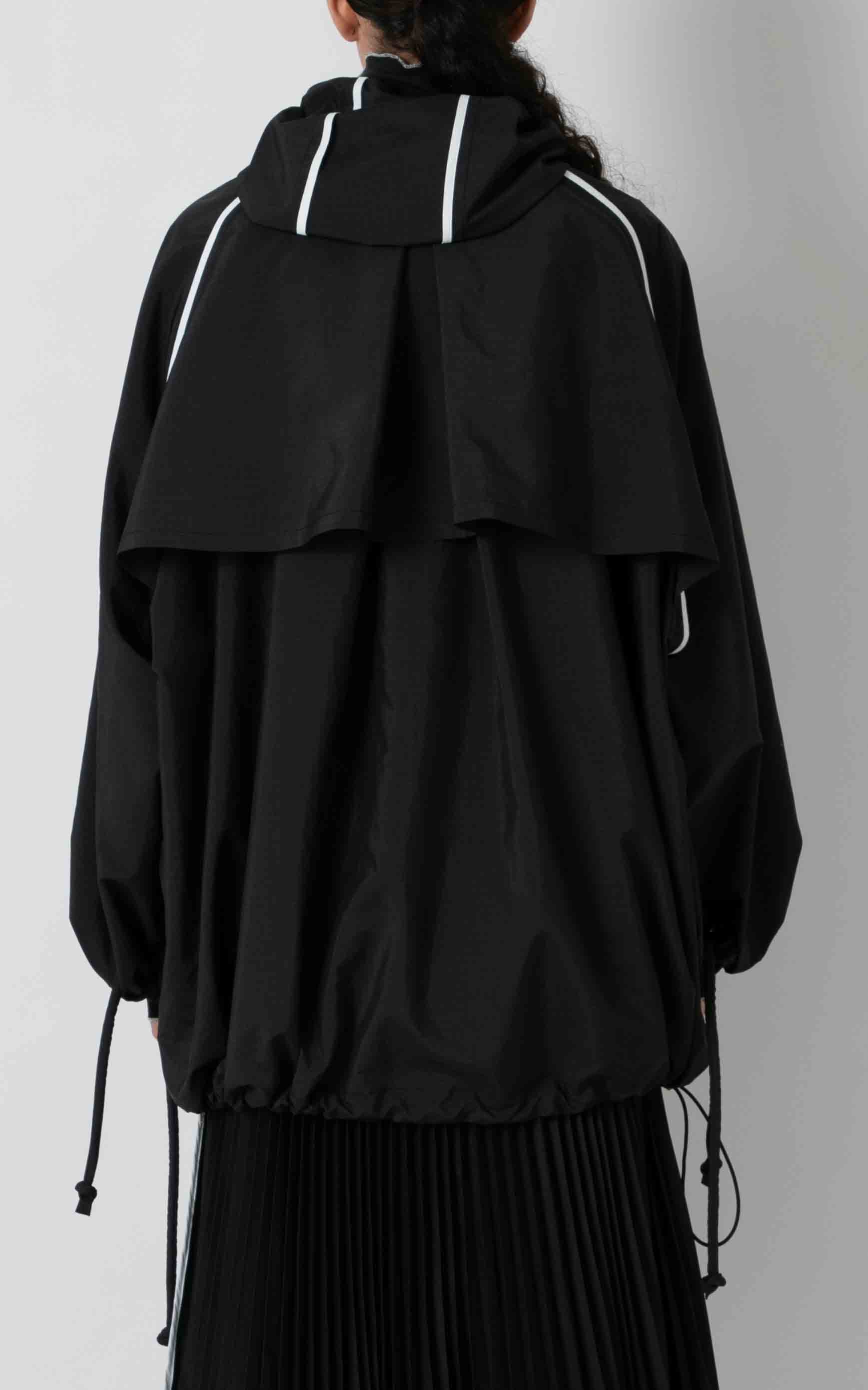 裾元、袖元、フードには絞りがついていて、絞りの加減で様々なシルエットを楽しんでいただけます。
