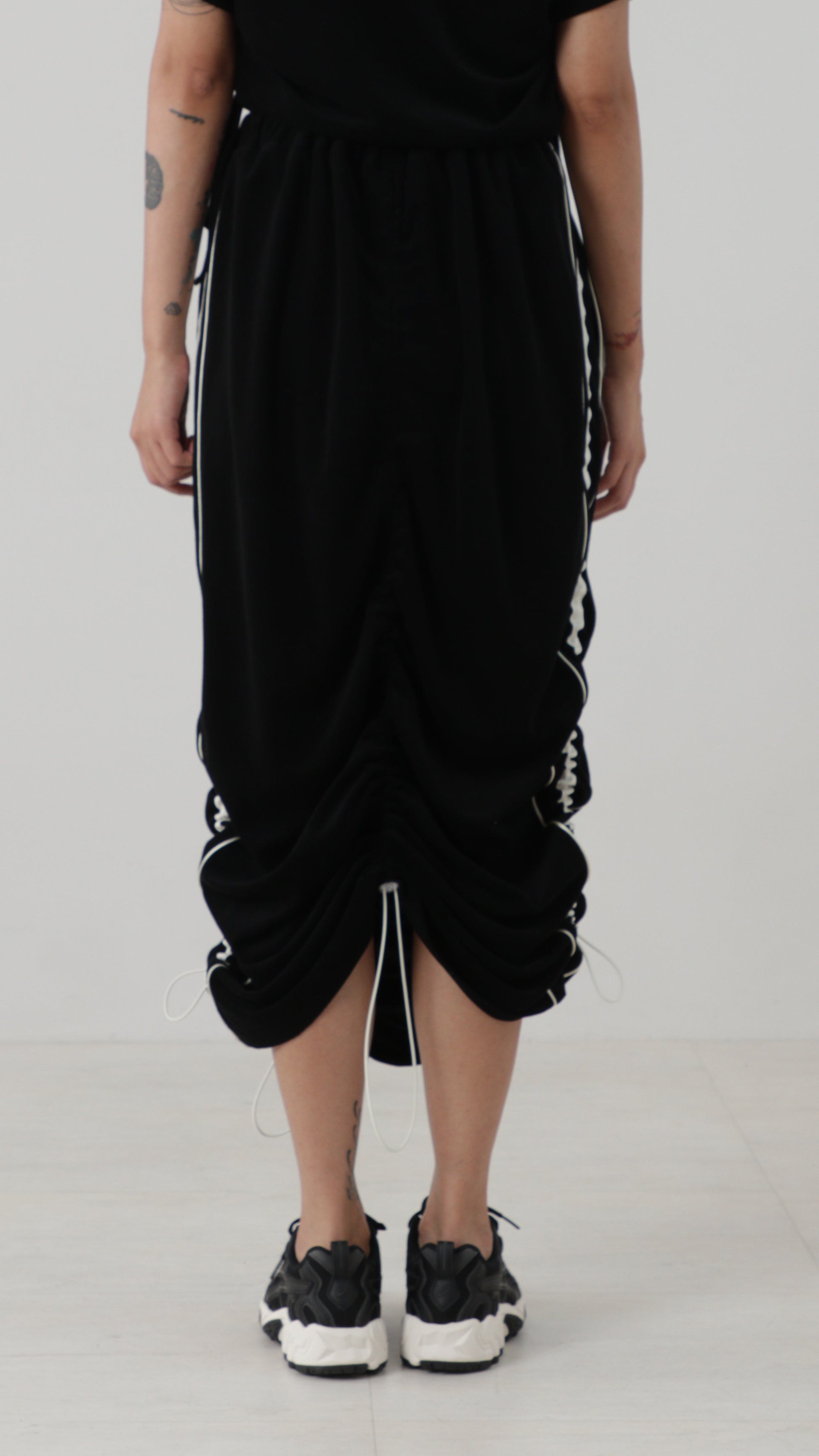ドローコードは前後に5か所配しており、絞ることでシルエットの変化を楽しめます。