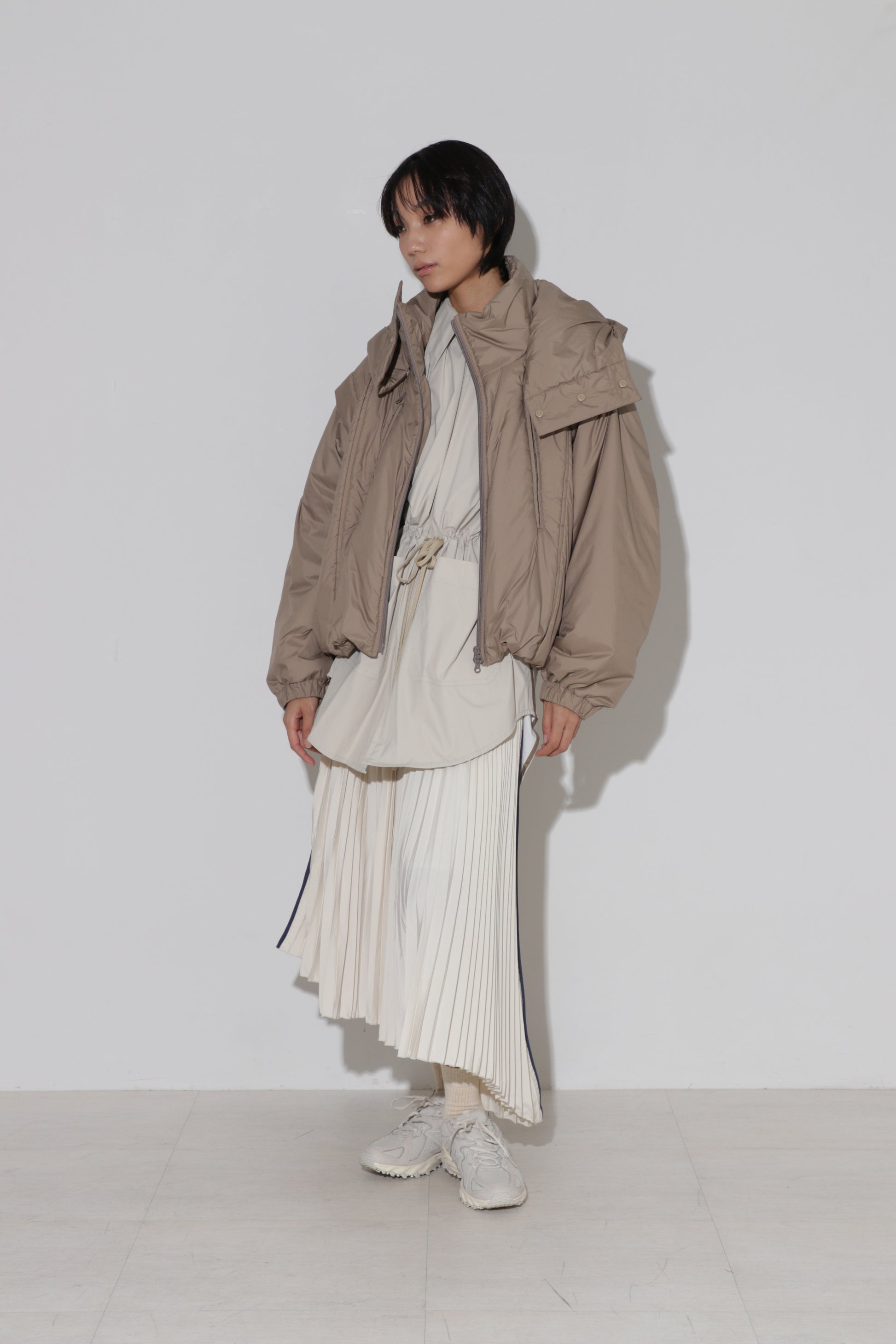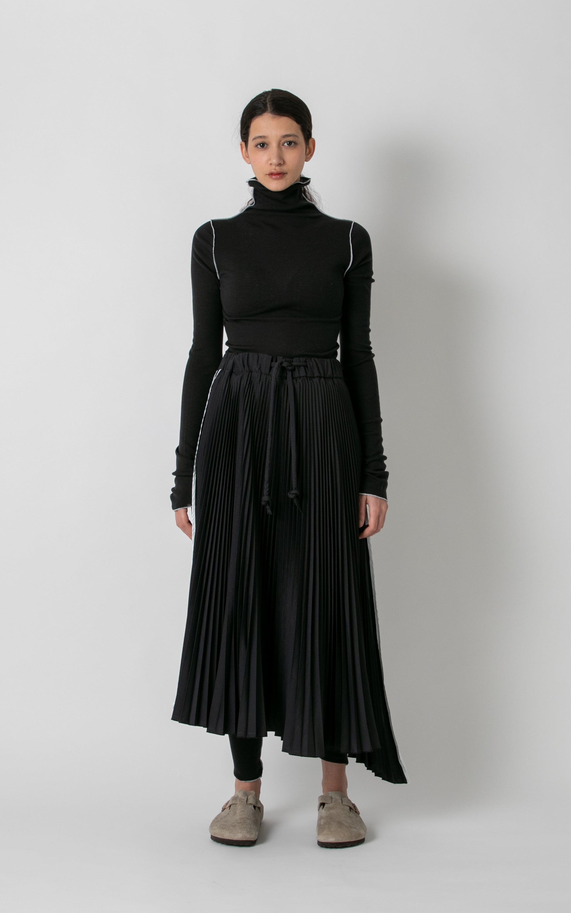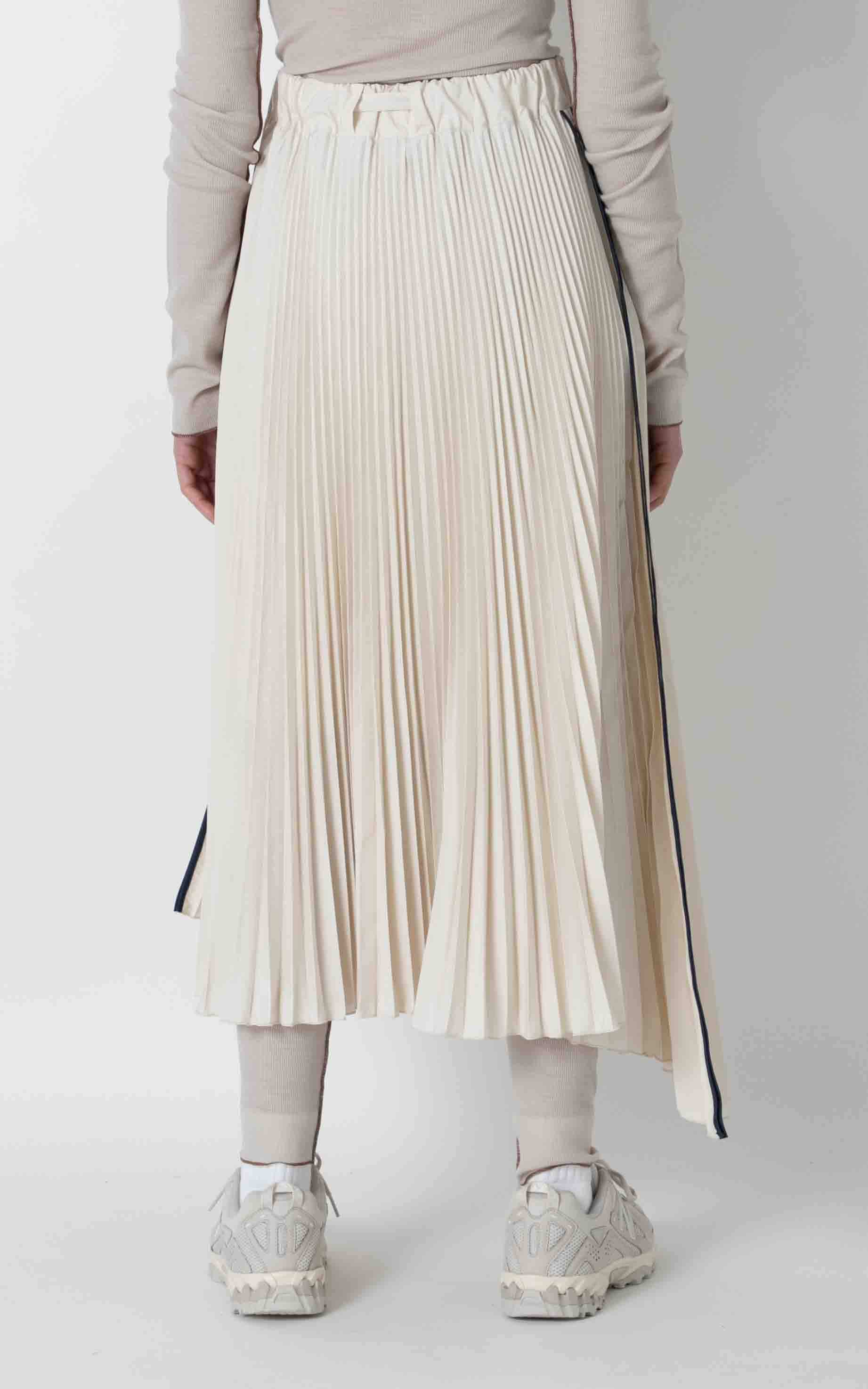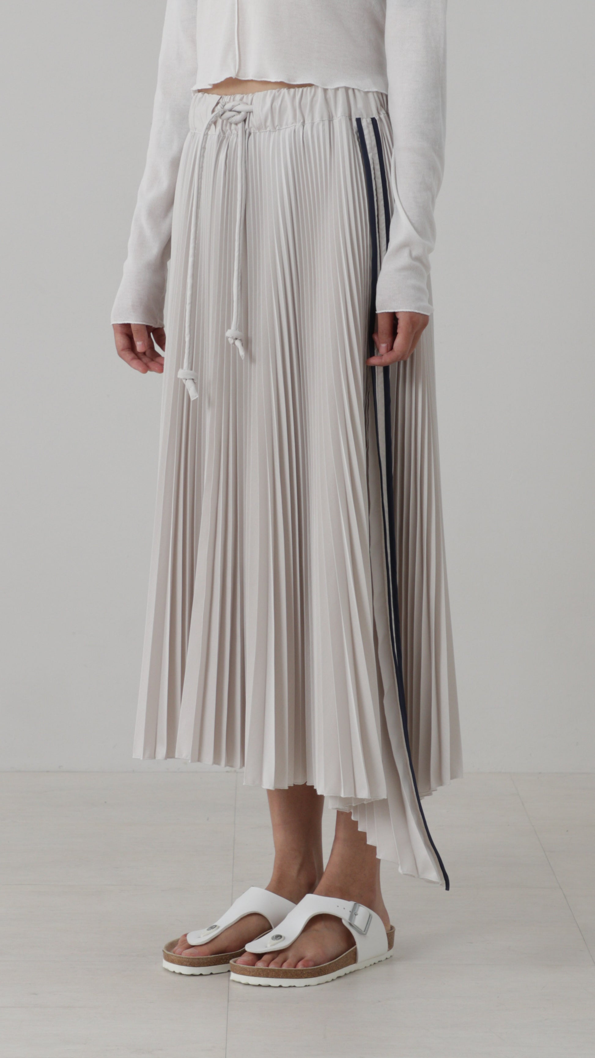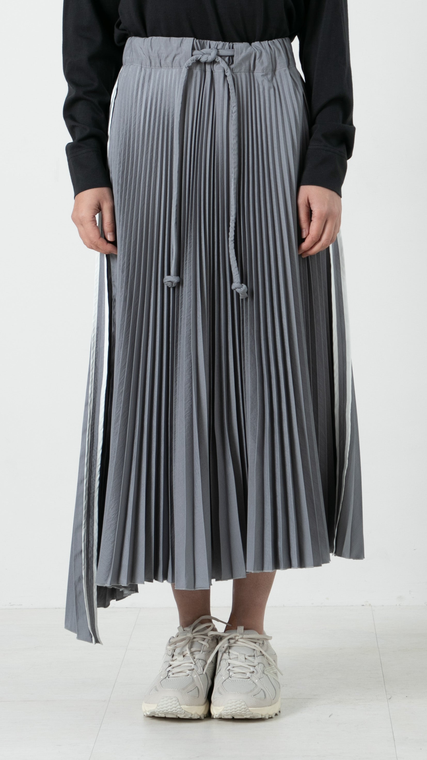 リサイクルポリエステル100%のリップ素材を用いたプリーツスカートです。