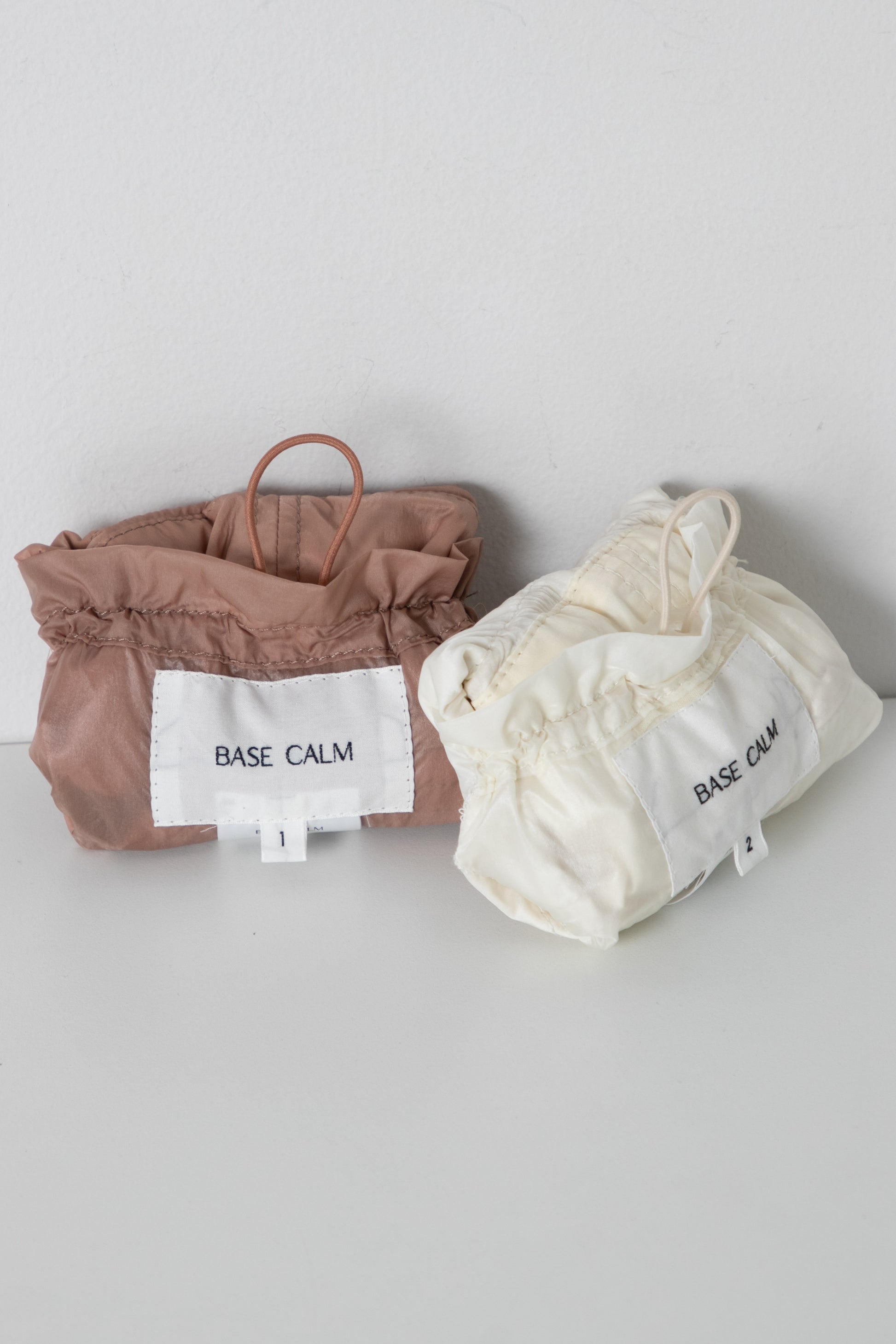リサイクルポリエステルのリップ素材と透け感のある薄手ナイロンタフタのコンビネーションでいずれの素材も撥水加工が施されています。
