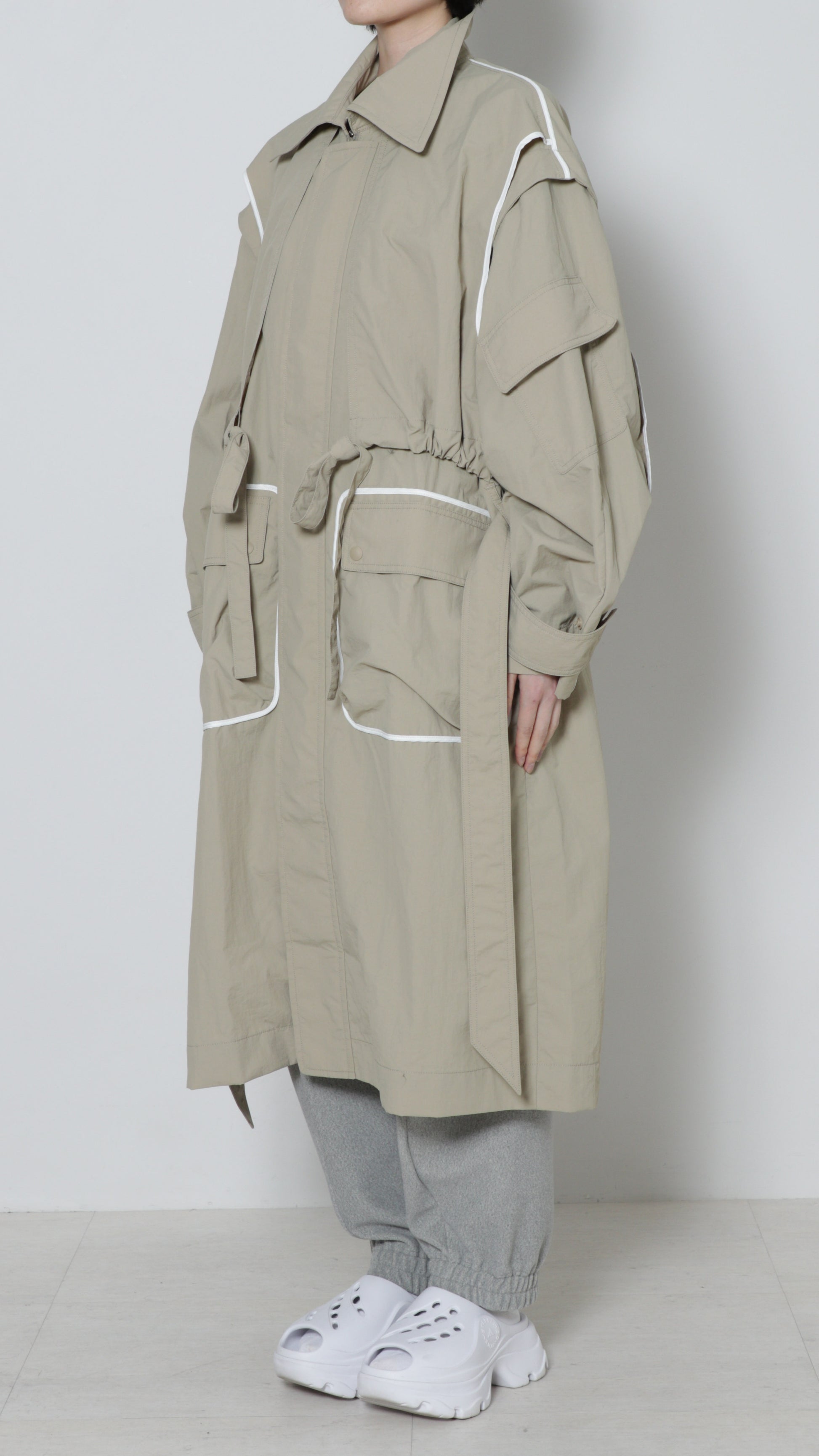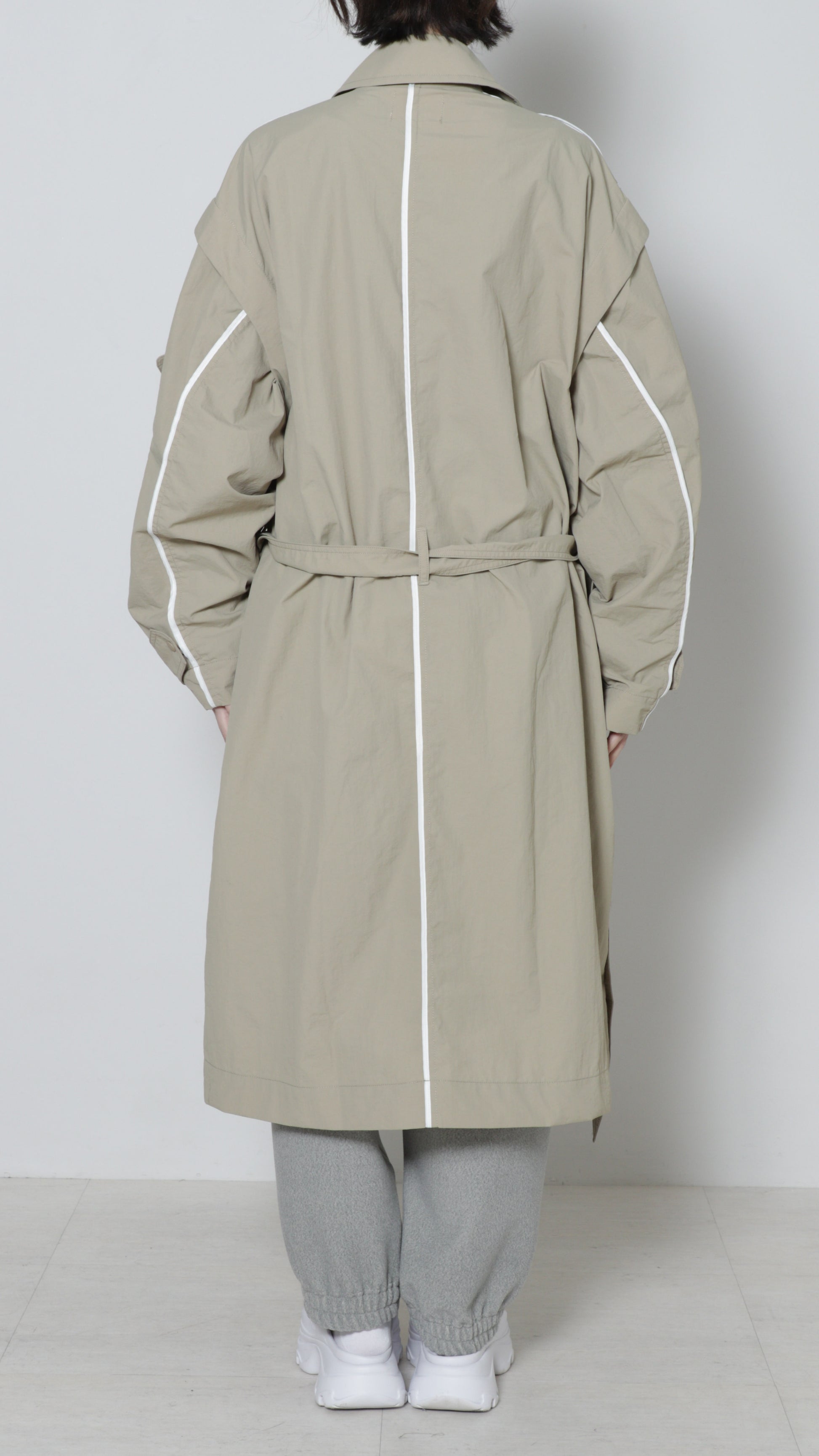 撥水性・防風性のあるナイロン素材を採用したトレンチディテールのコートになります。